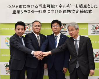 この度、青森県つがる市が取り組む再生可能エネルギーを起点とした「産業クラスター」形成を円滑に推進し、地域振興につなげるために、一般財団法人 地域社会課題解決研究所は、青森県つがる市、青森県産業技術センター、エヌ・ティ・ティデータ研究所(NDK、東京)と連携協定を締結しましたことをご報告いたします。